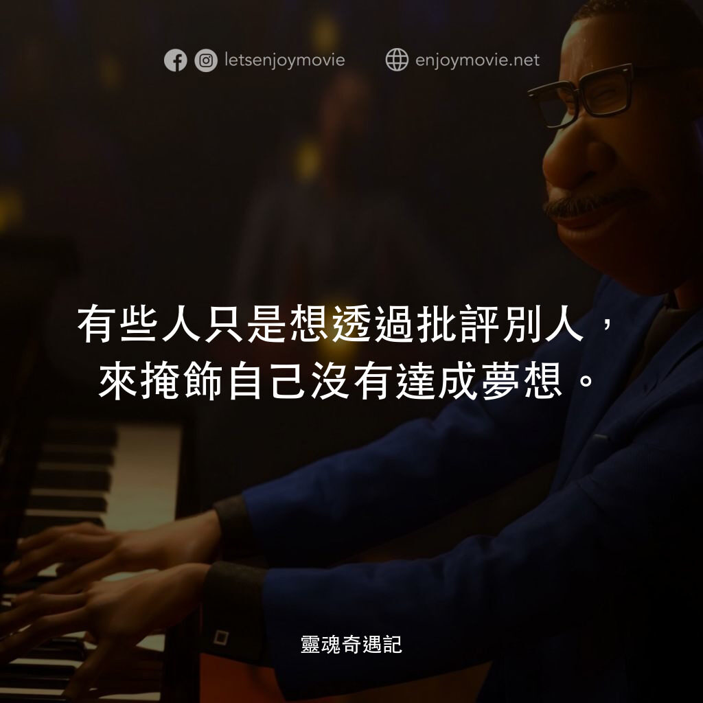 有些人只是想透過批評別人,來掩飾自己沒有達成夢想。-《靈魂奇遇記》