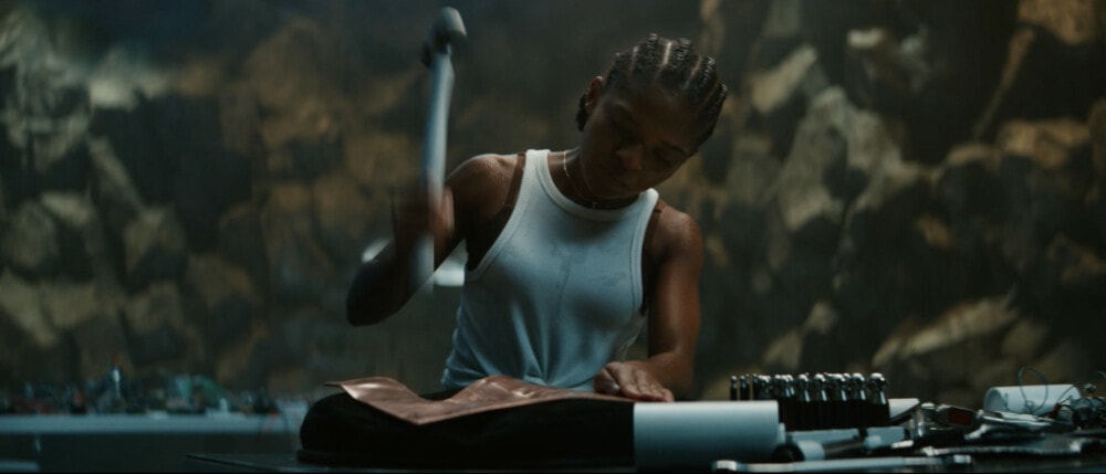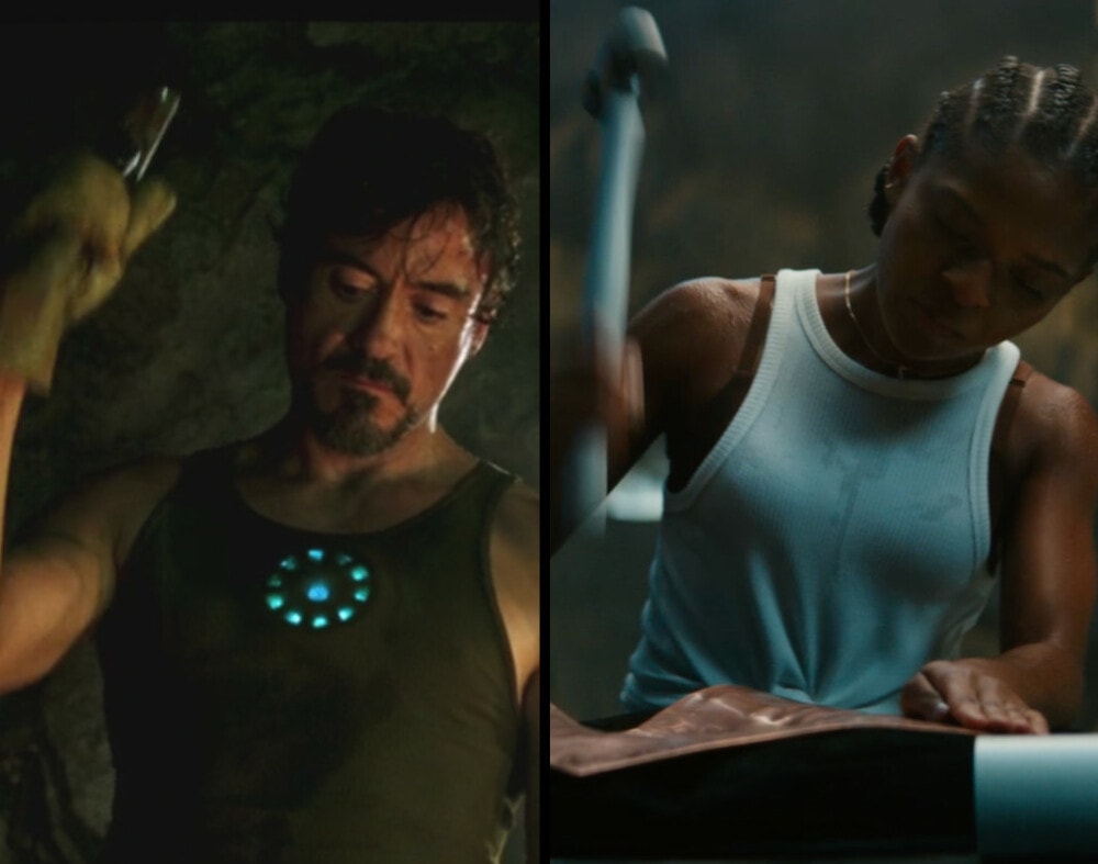 這位新角色在《黑豹2:瓦干達萬歲/Black Panther: Wakanda Forever》電影預告裡頭的「鐵鎚畫面」讓小編馬上聯想到《鋼鐵俠/鋼鐵人/Iron Man》第一部在山洞打造戰衣的畫面,致敬程度百分百啊!