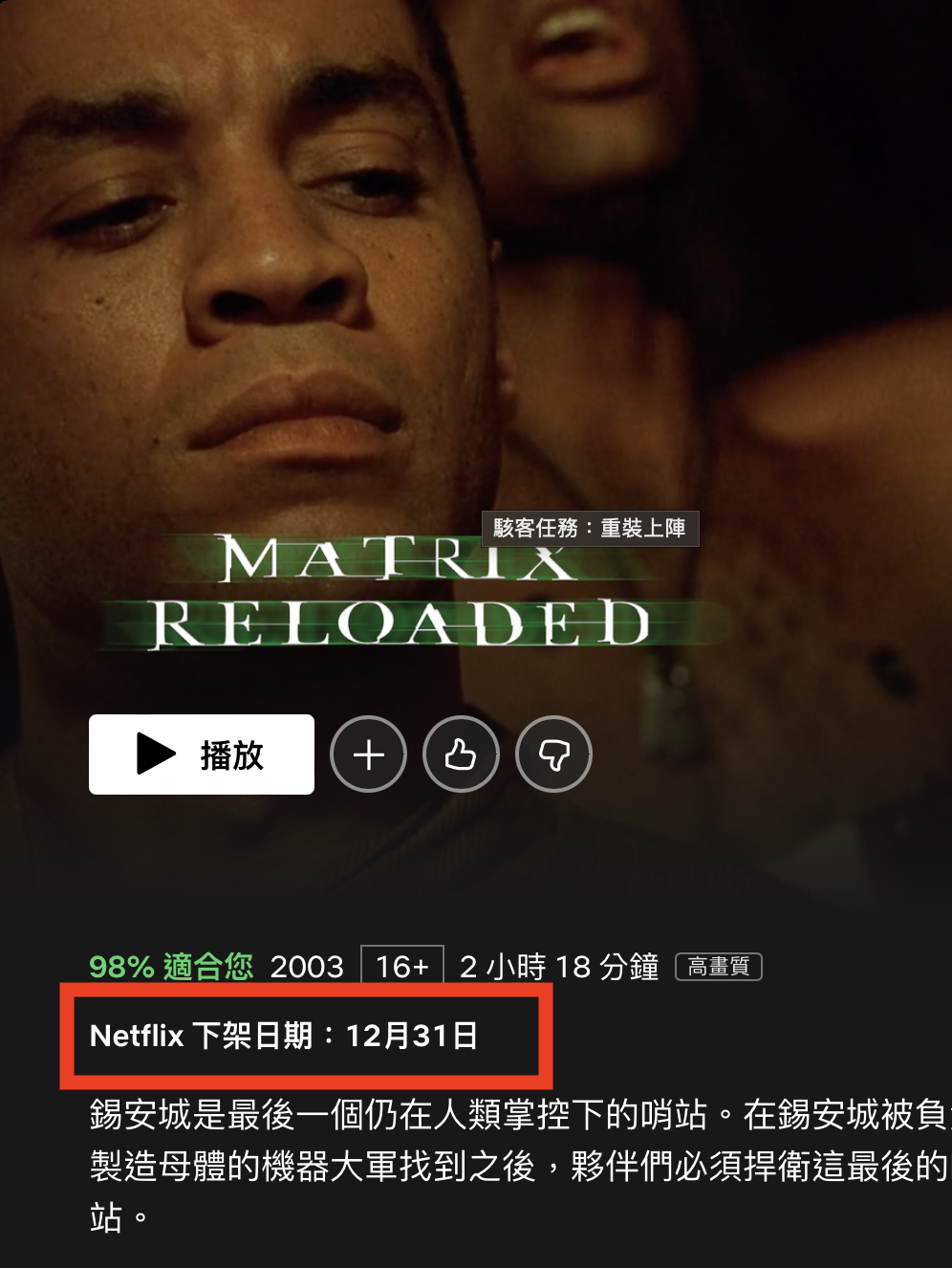 Netflix :『若 Netflix 下個月將不再播出某個節目或電影,我們會在幾個地方顯示「Netflix 下架日期」的訊息,確保您不會錯過。』