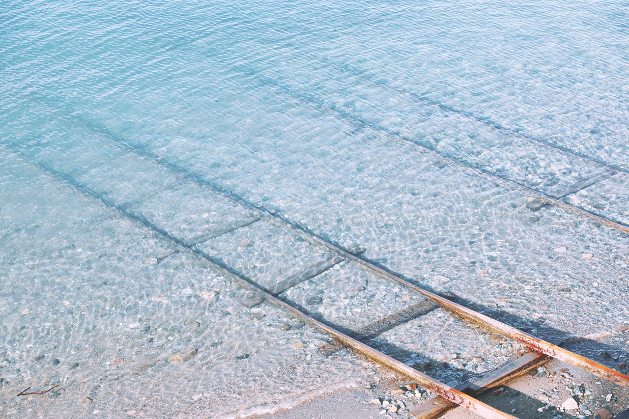 這條海中路軌是用來讓小船下水用的,所以只有一段,伸入水中數米就沒有了。大家可以扮演千尋在海中拍照打卡。